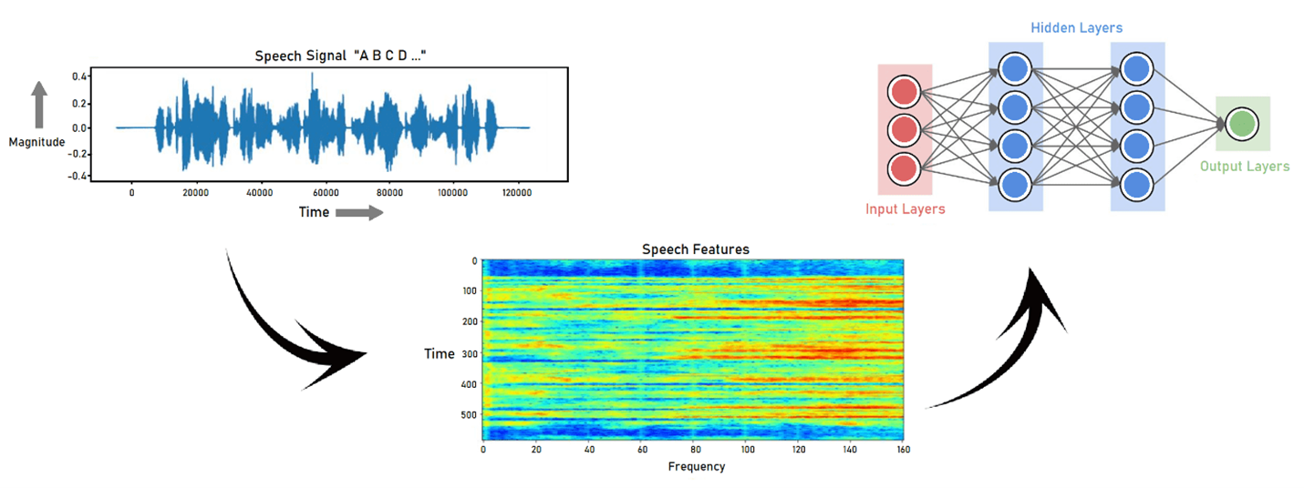 Speaker identification, as the name suggests, is the process of identifying which registered speaker has the given voice input (Figure 3). Speaker recognition can be classified as text dependent, text independent, and text prompted. To train the DNN for speaker identification, individual idiosyncrasies such as dialect, pronunciation, prosody (rhythmic patterns of speech), and phone usage are obtained.