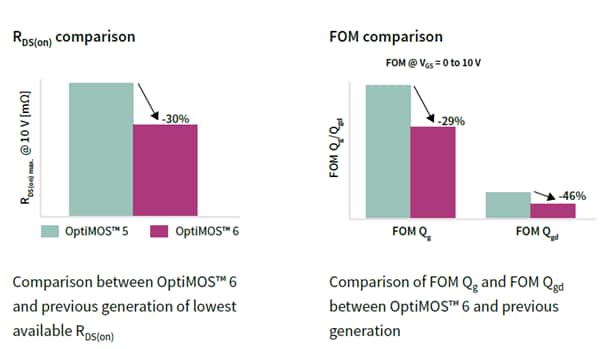 Figure 3: OptiMOS 5 versus OptiMOS 6 comparison for RDS(on) and FOM. (Source: Infineon Technologies)