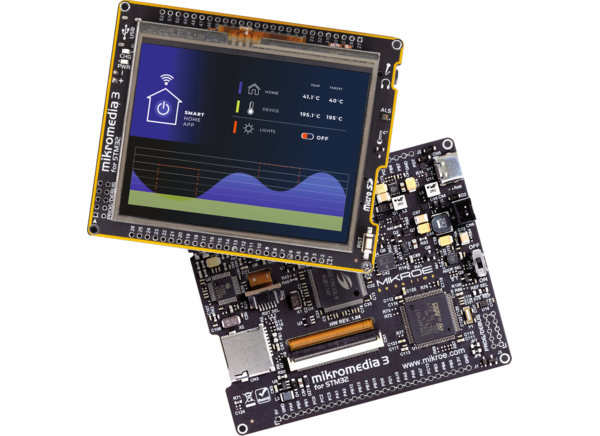 MikroE MIKROE-6131 Mikromedia 3 for STM32F4 Resistive development board offers a high-quality 3.5" TFT true-color display with a resistive touch panel. The board is not limited to multimedia-based applications only. It features a USB, digital motion sensor, battery charging functionality, and SD card reader, which expand its use beyond multimedia.The Mikromedia 3 for STM32F4 Resistive display module is managed by the Solomon Systech SSD1963 graphics driver IC. This powerful graphics coprocessor is supplied with 1215KB of frame buffer memory. The device also includes some advanced features such as the hardware accelerated display rotation, display mirroring, hardware windowing, dynamic backlight control, programmable color and brightness control, and more.