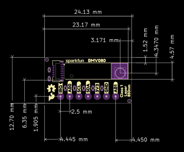 - 4.2mm x 3.1mm x 20mm Bosch BMV080 sensor dimensions