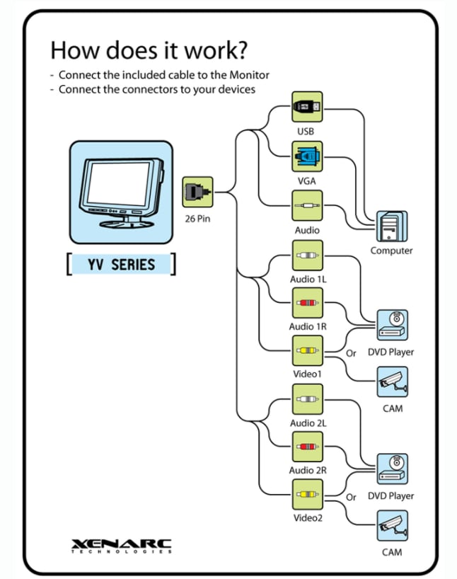 - VGA, HDMI, DVI, and AV inputs, 4x3 aspect ratio